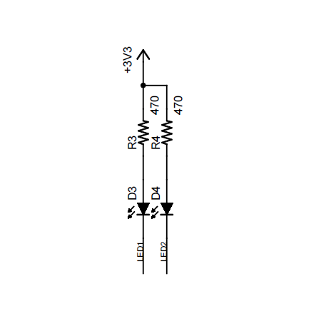 RPi-PWR2 mini基板には予めユーザ用の表面実装LED(LD1, LD2)が2個実装されています(回路図ではD3, D4)。